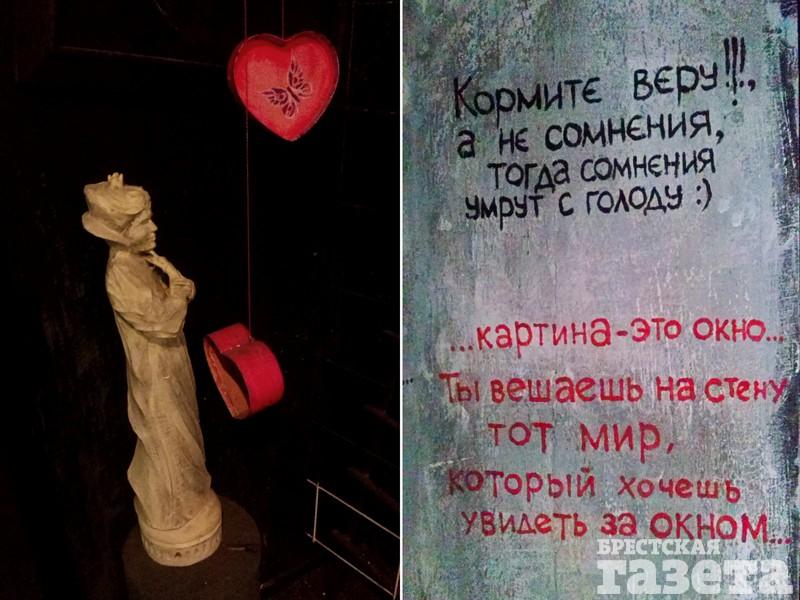 Если вы не устанете гулять по городу, можно посетить выставку Александра Вышки «13-е чудо света». Техника, в которой работает художник, называется светодинамической живописью. При дневном свете посетители видят рамки, затянутые паутиной, картины, на которых резвятся домовые (по признанию Александра Вышки, это автопортреты), керосиновые лампы, ключи и замки. Но стоит выключить свет, и помещение преображается. Художник приглашает в путешествие по Млечному пути.