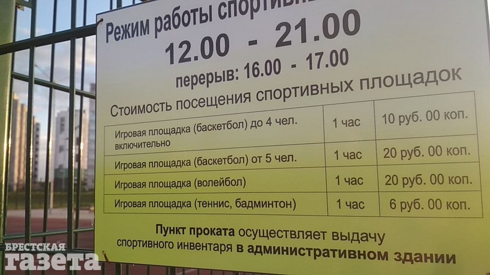 «Удивительно, но факт: в Парке тысячелетия спортплощадки, которые были всегда открыты в прошлые годы и можно было прийти с мячом поиграть, закрыли на ключ и вывесили дикий ценник на игру… На них и так было немного людей, а теперь и вовсе нет… Для кого строили?» — такое сообщение и несколько фото пришли в телеграм-бот «Брестской газеты».