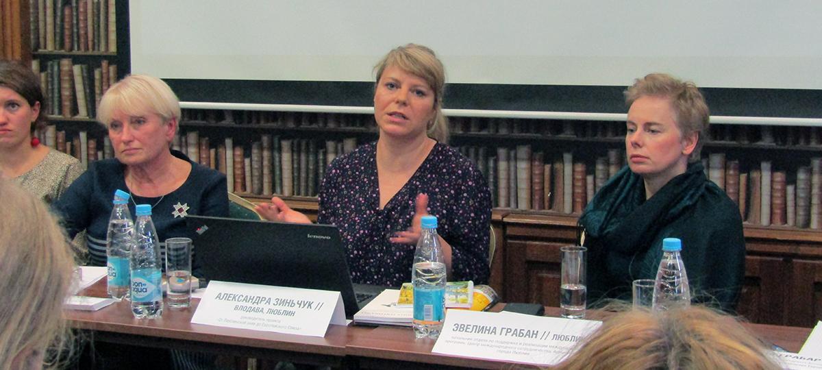 Начали с небольшого фильма про Люблин, в котором история и наследие этого города были рассмотрены в контексте европейской истории. Александра Зиньчук, как одна из модераторов, во вступительном слове отметила, что и Брест – часть неповторимой унии. Далее все участницы в 10-минутных докладах поделились опытом из сфер своей деятельности.