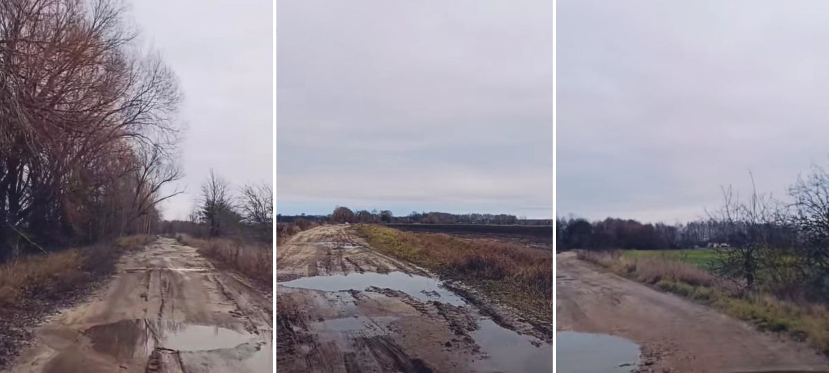 Это обычная проселочная дорога, которая проходит через поля. Ни о каком асфальте и речи не идет. Судя по видео, там куча ям и луж. И по ней ездит сельскохозяйственная техника. На обычном легковом авто проехать там сложно, зато можно значительно сократить путь — участок из Матясы в Глинянки занимает 3,4 км.