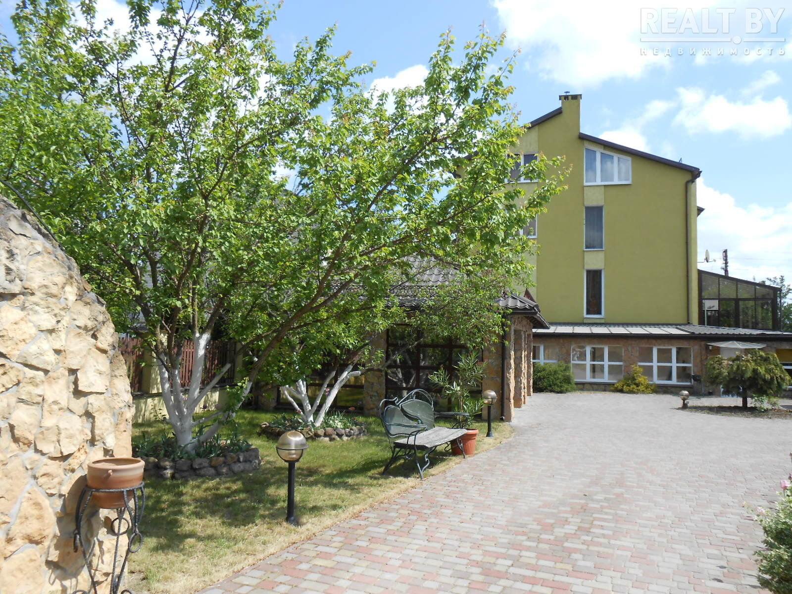 На территории есть водоем, беседка с барбекю, а также два гаража — один встроенный на 2 автомобиля, другой — отдельно стоящий также на две машины.