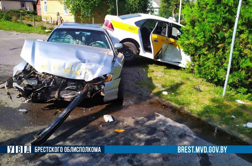 В Кобрине такси врезалось в автомобиль и фонарный столб