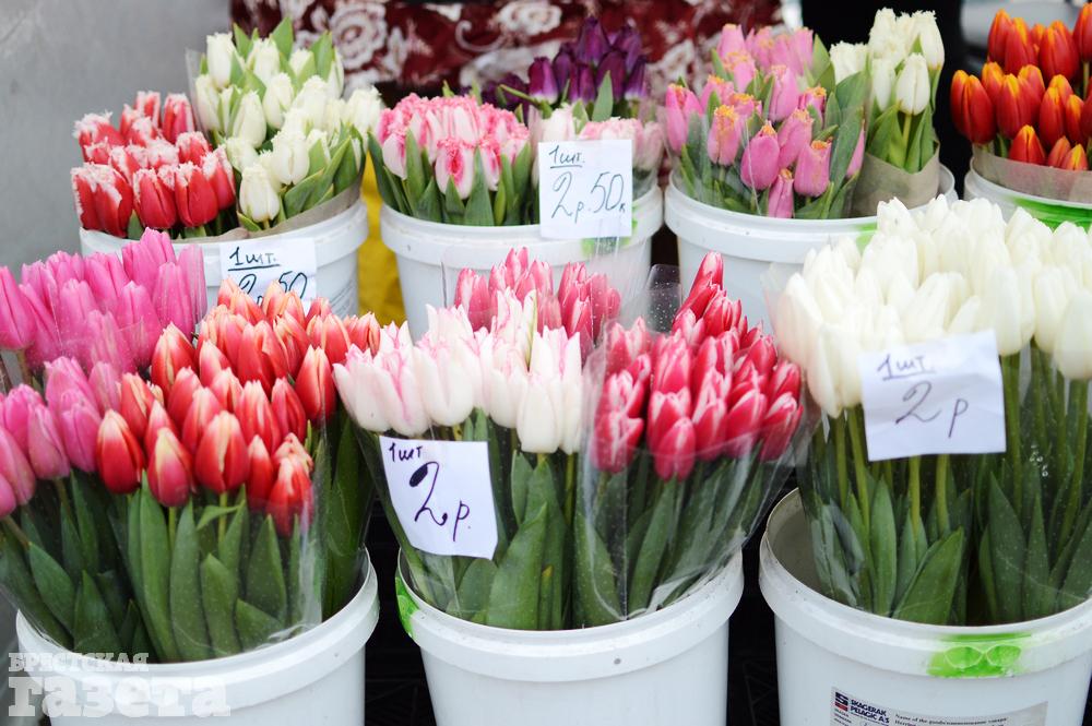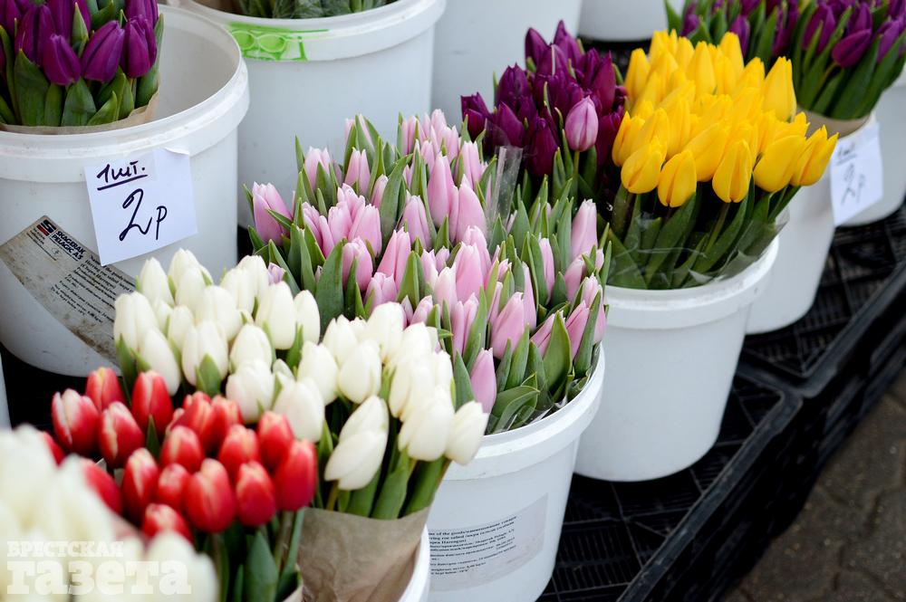 Тюльпаны – до 2,5 рублей, нарциссы – до 12… Мужчинам в помощь: про цены на цветы в Бресте перед 8 марта (много фото)