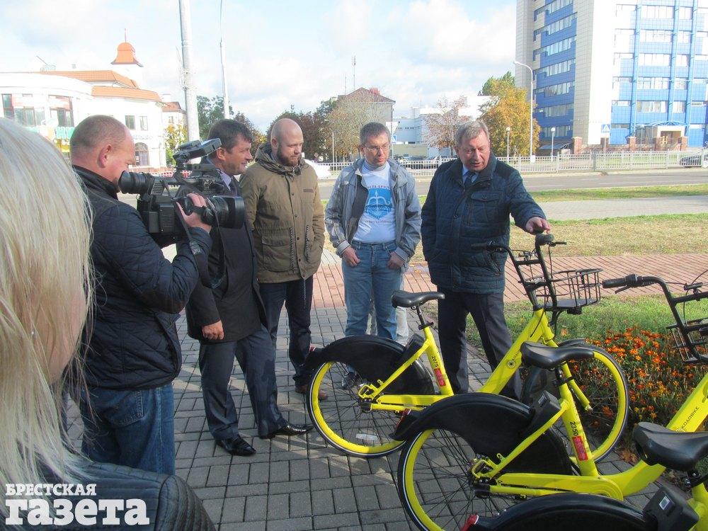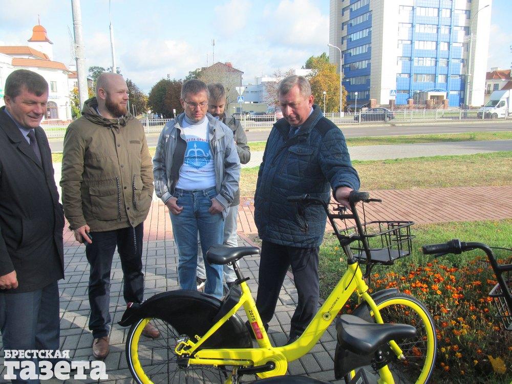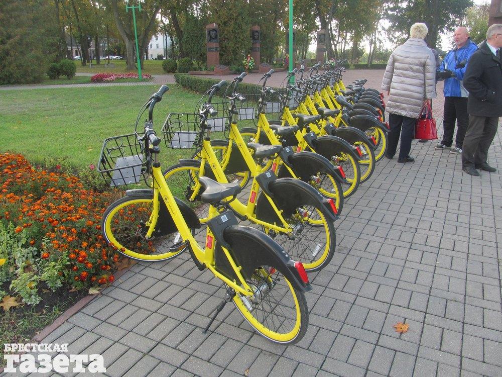 Пока что в Брест привезли желтые велосипеды, но глава города высказал пожелание, чтобы в дальнейшем велосипеды были сине-голубые.