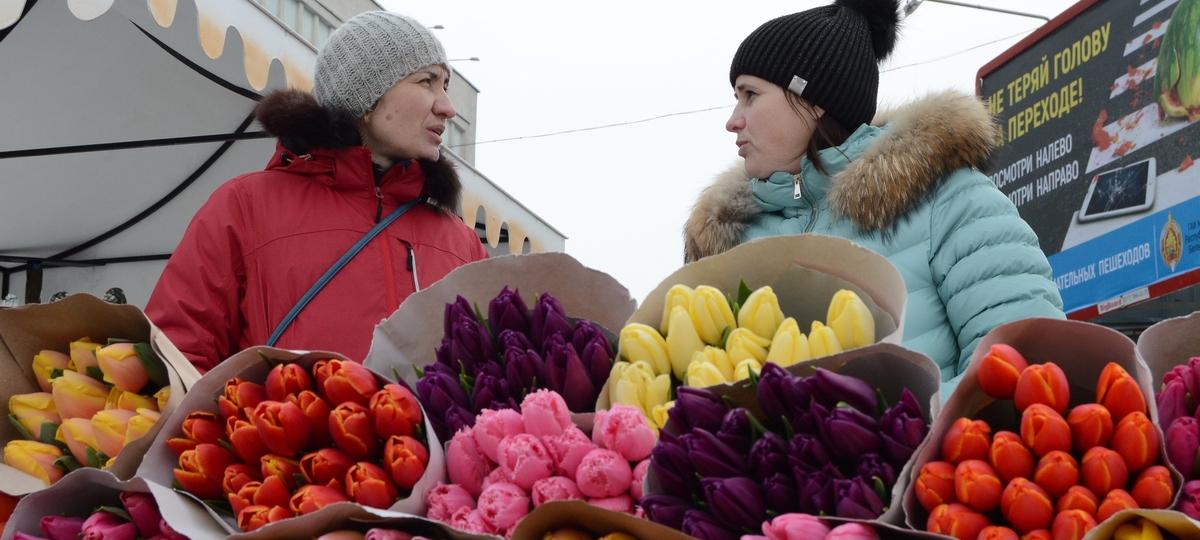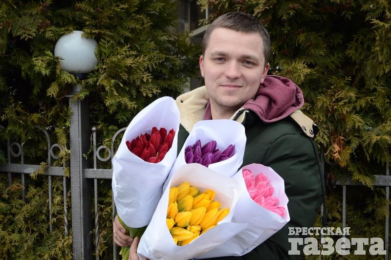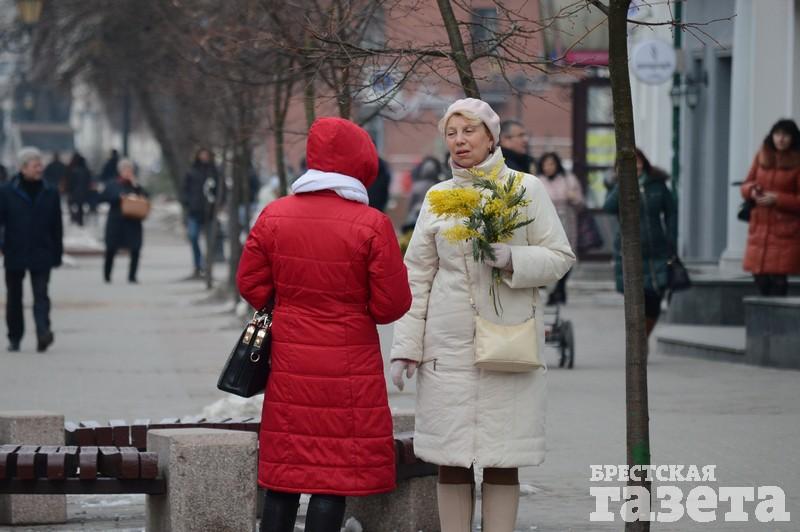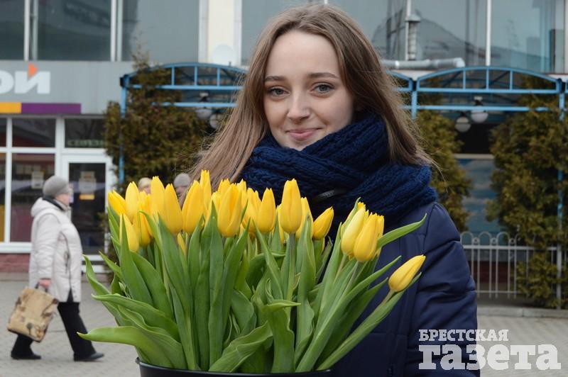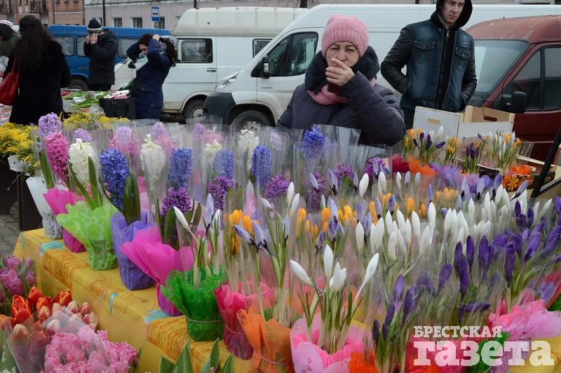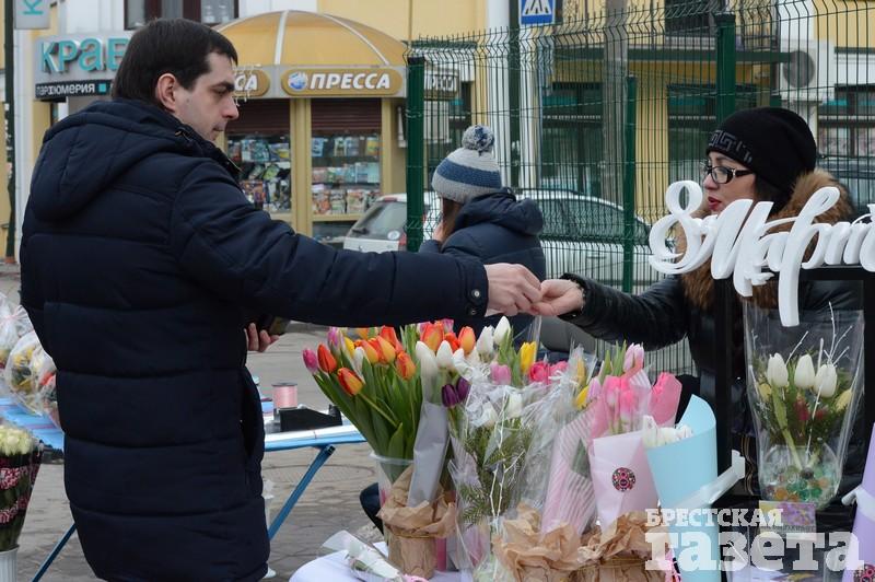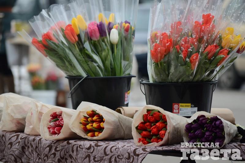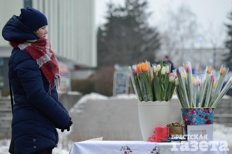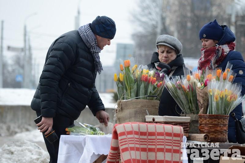 Первые торговые точки с тюльпанами и мимозой стали появляться еще в понедельник 5 марта. На следующий день цветочников стало заметно больше. В центре города большие цветочные ярмарки развернулись возле ЦУМа и рынка «Центральный». Несколько тюльпанных торговцев разделили на зоны своего коммерческого интереса всю протяженность брестского Арбата.