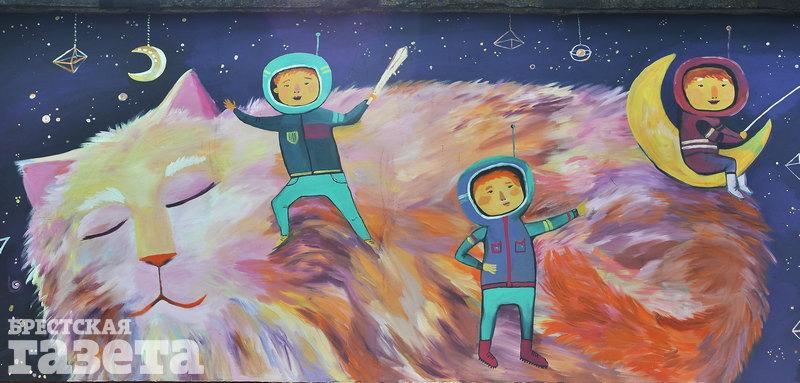 Художница Леонида Василькович украсила теплопункт Брестского котельного хозяйства по ул. Ленинградской. На стене здания, которая выходит на детский центр медицинской реабилитации «Тонус», появились рисунки людей и животных.