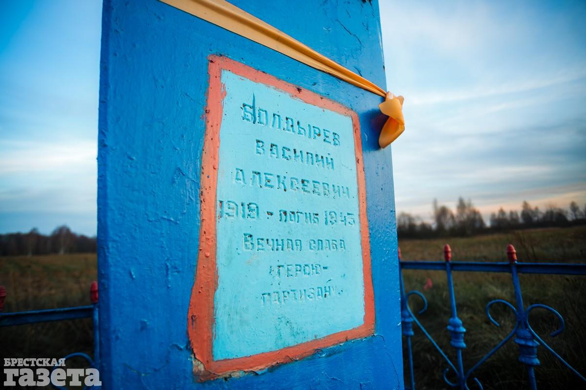Деревня Выгода расположена в Кобринском районе Брестской области. И для завершения этой истории мы отправились на поиск захоронения Болдырева. Отыскать могилу нам удалось не сразу. Пришлось около двух часов блуждать по полям и густому подлеску. Уже на закате, почти потеряв надежду, на взгорке за кукурузным полем мелькнул синий монумент, украшенный цветами и лентами: воинское захоронение №3362. Здесь, на белорусской земле, обрел покой рядовой Василий Болдырев. Ему было 25 лет.