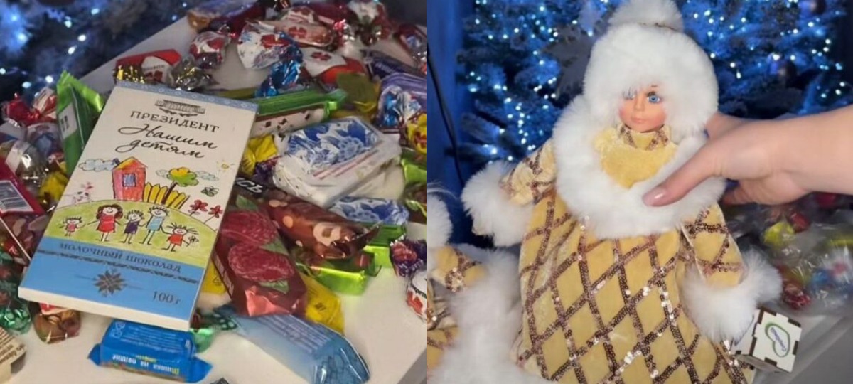 «Дзякуй нашаму дырэктару. Найлепшы чалавек. Гэта ён даў нам прысмакі ўсякія. Яшчэ і падарункі з цукеркамі былі. Гэта мяса, каўбасы… Гэта нам з жонкай далі дваім. Два шампанскіх. Ну, што сказаць? Маладзец!», — пажартаваў ён у сваім TikTok.