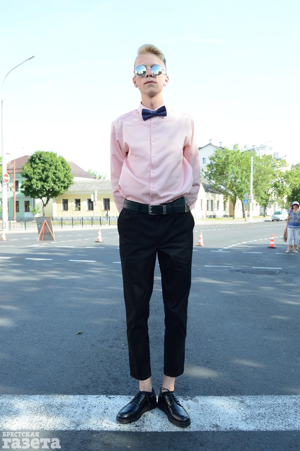 Не скажу, что увлекаюсь модой, но я с детства отличался от всех. И уже XXI век, и банальный костюм – это слишком банально выглядит, а я люблю выделяться. А по мне не видно? Розовая рубашка, потому что это хорошее сочетание и мне нравится розовый цвет. А штаны такие, потому что, во-первых, это сейчас модно, а во-вторых, сейчас очень жарко. Я бы не перенес.